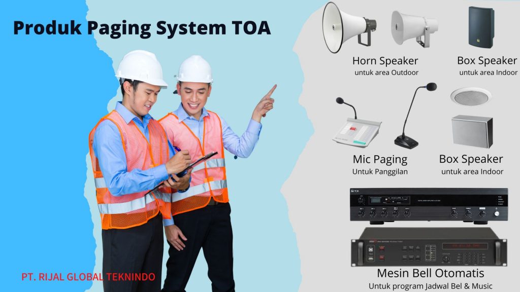 Paging System TOA adalah alat komunikasi publik yang digunakan untuk memberikan pengumuman maupun panggilan kepada khalayak ramai. System Paging ini biasanya digunakan untuk tempat tempat umum seperti Bangunan Gedung, Perkantoran, Sekolah, Tempat Wisata, Lapangan, Mall perbelanjaan, Rumah sakit dan lainya